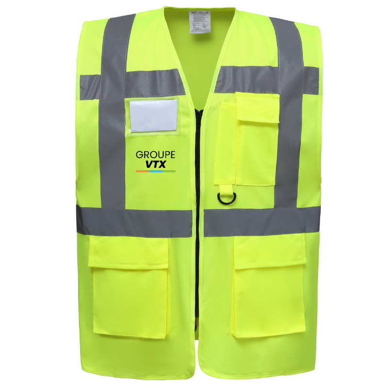 Doté d’une fermeture zippée solide et d’un emplacement pour badge ou carte d’identification côté cœur, il est idéal pour les secteurs du BTP, de la logistique ou des événements. Ce modèle est disponible en 8 coloris dynamiques, allant du jaune au noir en passant par l’orange fluo ou le rose, et en tailles S à 5XL, pour s’adapter à toutes les morphologies.