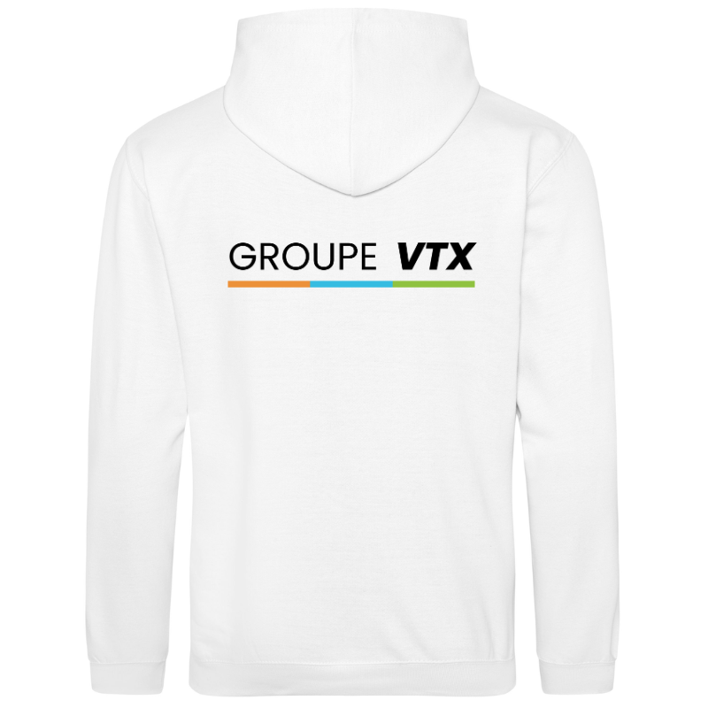 Le logo GROUPE VTX est brodé avec soin sur le côté cœur et dans le dos, renforçant votre image de marque avec sobriété et professionnalisme. Disponible en noir ou blanc, ce sweat est décliné en tailles S à 5XL.